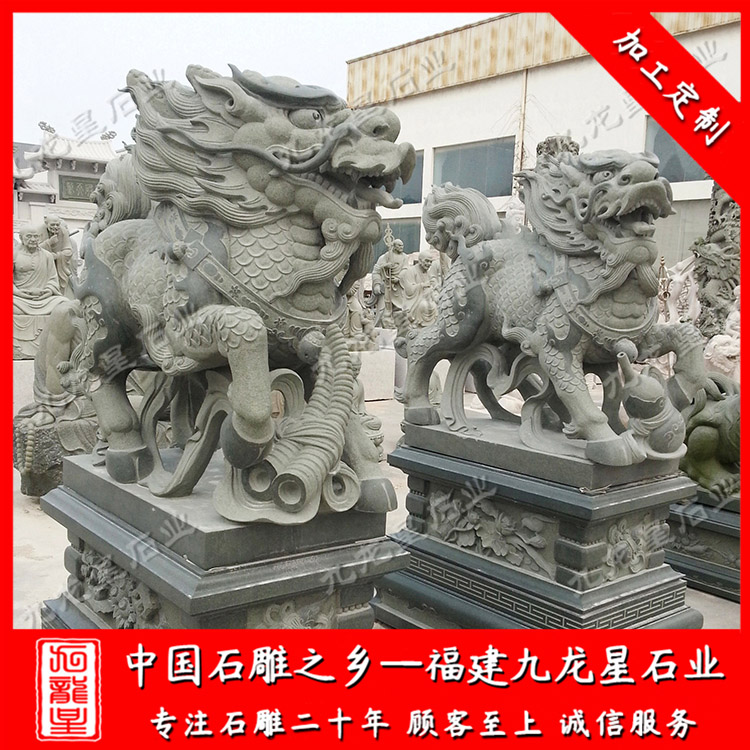石雕麒麟廠家很多集中在福建惠安,惠安是我國的石雕之鄉(xiāng),雕刻出來的石雕麒麟紋路流暢,生動形象。福建九龍星石業(yè)發(fā)展有限公司是惠安石雕麒麟廠家,從事石雕麒麟神獸加工雕刻制作20多年,石雕麒麟圖片、石雕麒麟款式多樣,制作經(jīng)驗豐富,雕刻工藝jing湛,材質(zhì)可以為花崗巖、青石、漢白玉等等,望廣大新老客戶前來參觀考察和選購。
