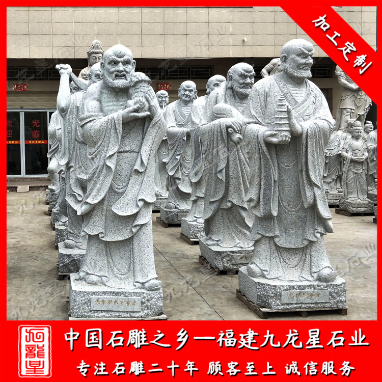 青石十八羅漢像廠家和花崗巖十八羅漢像廠家很多集中在福建惠安,福建九龍星石業(yè)發(fā)展有限公司位于--福建惠安,是石雕十八羅漢像廠家,九龍星人相信每塊石頭都獨馥藝術(shù)氣息,所以善用千年文化雕鑿工藝的研究、傳承、融合和發(fā)揚,使石雕作品承載藝術(shù)文化、體現(xiàn)更多社會價值。九龍星從事石雕十八羅漢像加工制作20多年,石雕十八羅漢像圖片全,石雕十八羅漢像材質(zhì)可以為花崗巖、青石、漢白玉等等,望廣大新老客戶前來參觀考察和選購。