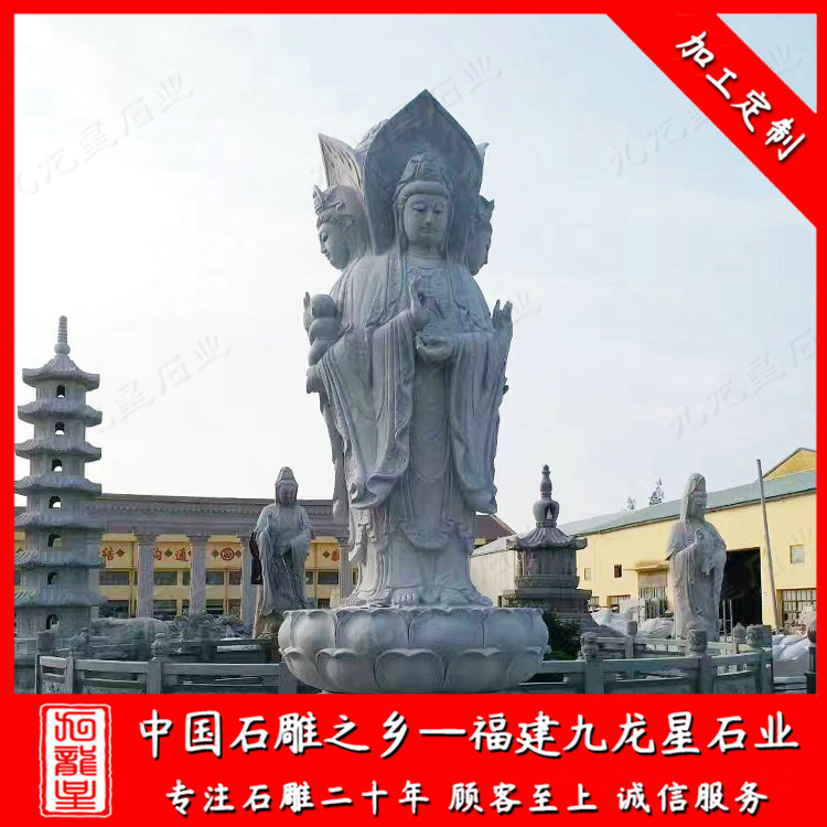 常見(jiàn)的觀音石像圖片的造型通常腳下會(huì)有蓮花的底座,也是由石材雕刻打造而成。此外較為常見(jiàn)的石雕觀音雕像有:滴水、楊柳、三面、園光、送子、蓮臥、提籃、千手等。在選擇石雕觀音菩薩雕像造型之時(shí),是可以根據(jù)擺放的空間以及供奉的目的來(lái)選擇菩薩的制作造型的。常見(jiàn)的石雕觀音菩薩雕像腳踩蓮花高9.9米、6米、8米、3米、2米等。