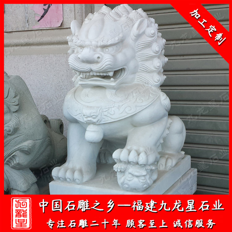 因為漢白玉表面看上去潔白,采用漢白玉雕刻的獅子看上去簡潔大氣、華麗壯觀。漢白玉獅子安裝在銀行門口、別墅門口、酒店門口等地方。