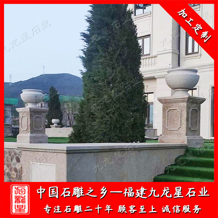 小區(qū)地產(chǎn)石雕噴泉水缽采用的是花崗巖中的黃銹石石料加工雕刻,歐式簡(jiǎn)約風(fēng)格;浙江小區(qū)石雕花缽花盆同樣采用的是銹石材質(zhì),款式有兩種,一種為圓形,一種為柱形。雖為兩種不同形狀的石雕花缽花盆但是都是簡(jiǎn)歐風(fēng)格。