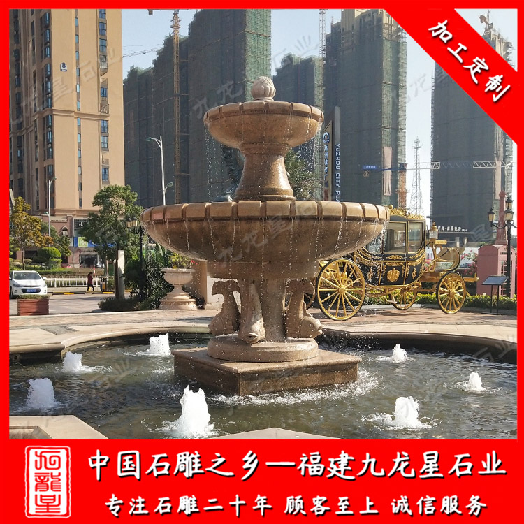 黃銹石石雕噴泉在我們的生活中很是常見,大型黃銹石石雕噴泉被安裝在室外,有小區(qū)、廣場公園、寺院、景區(qū)、別墅庭院等場所;小型的黃銹石水缽也作為擺件擺放在酒店室內(nèi)、自家庭院等地方。