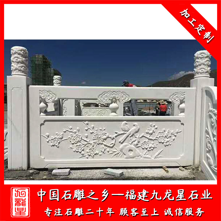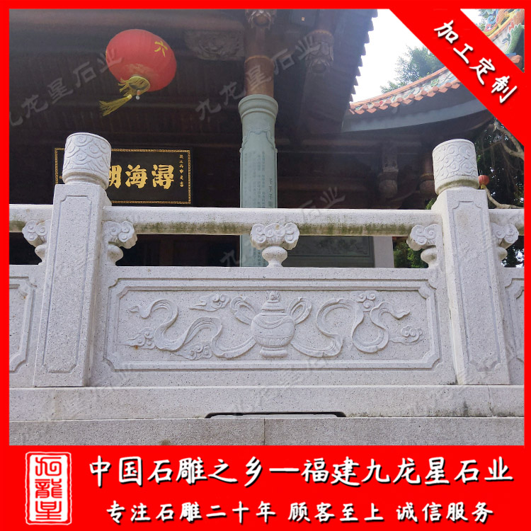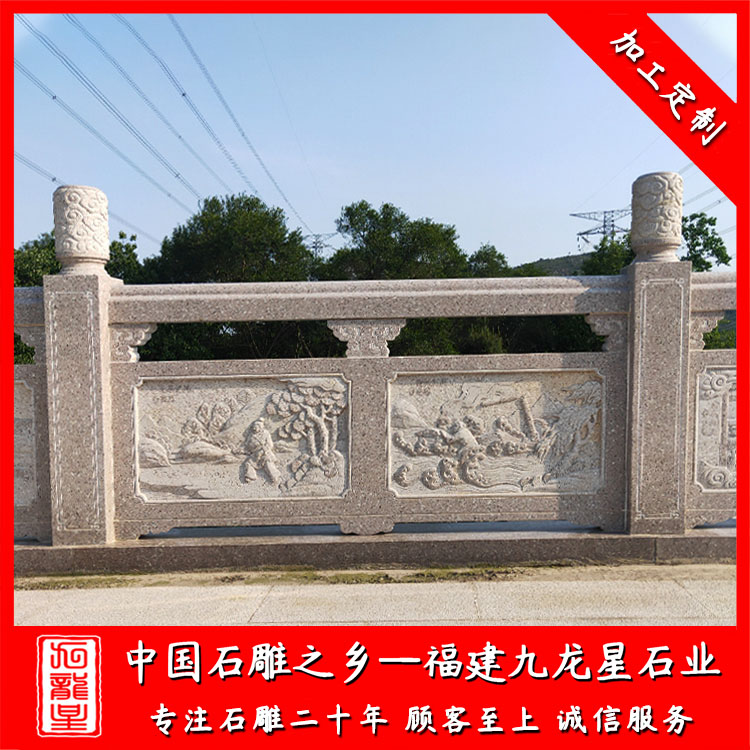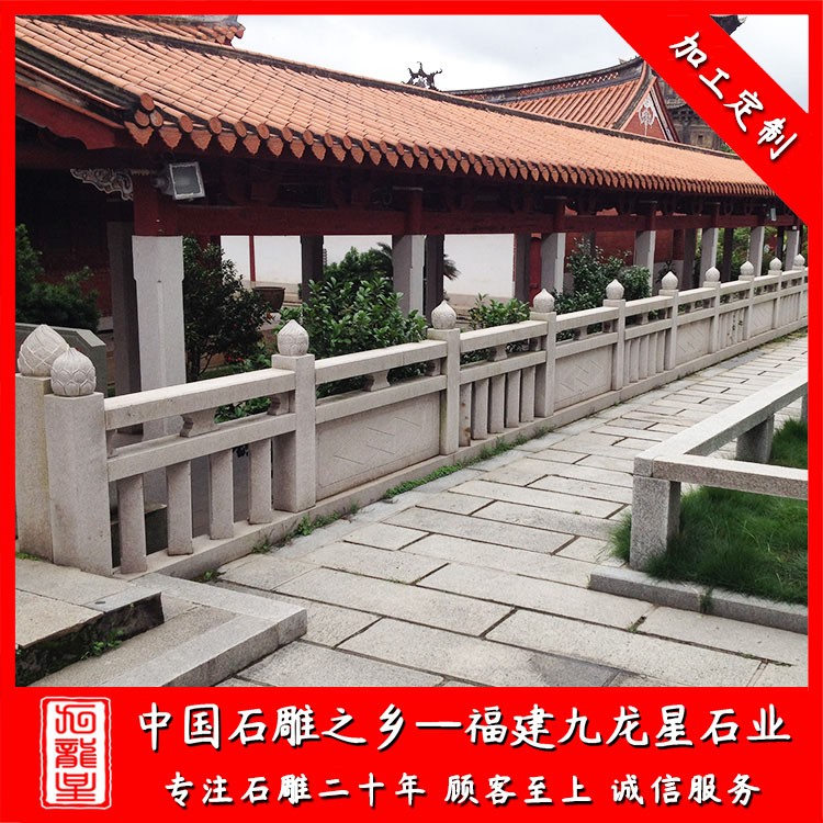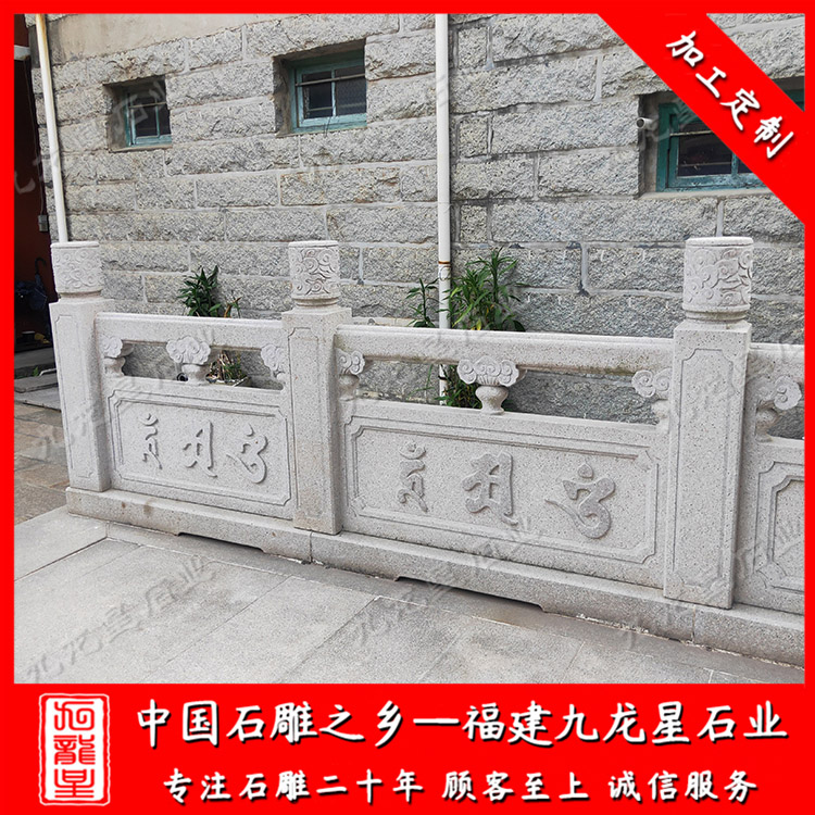 石材欄桿在我們的生活中十分常見,河道石材欄桿、橋梁石欄桿、寺廟石材欄桿護(hù)欄、祠堂石材欄桿、景區(qū)石雕欄桿、別墅石材欄桿、陽臺石欄桿等等。花崗巖石欄桿廠家雕刻 石材欄桿欄板圖案有很多,文章中的石材欄桿欄板圖案圖片供大家欣賞參考,可找九龍星石業(yè)定做。