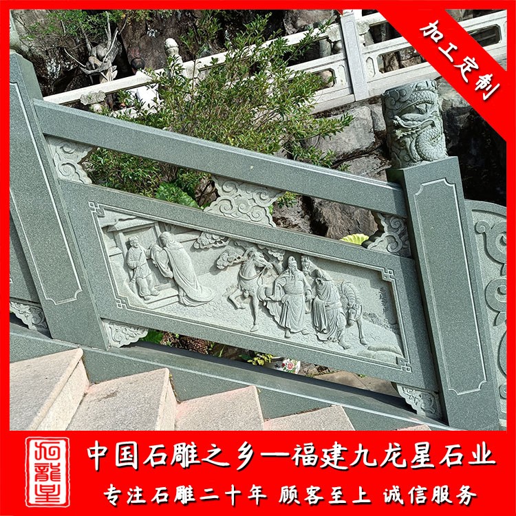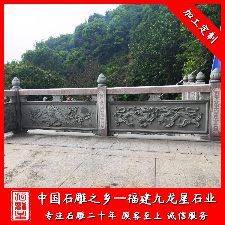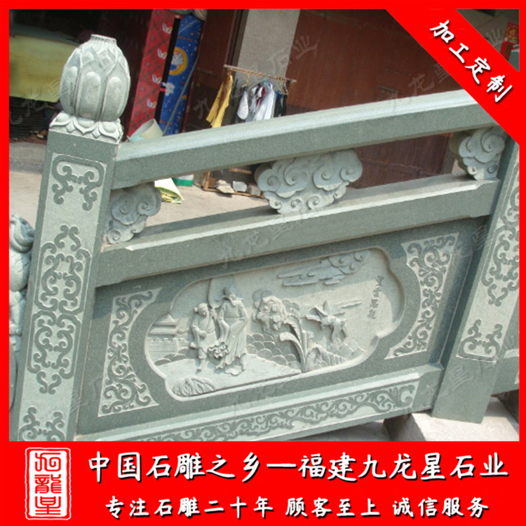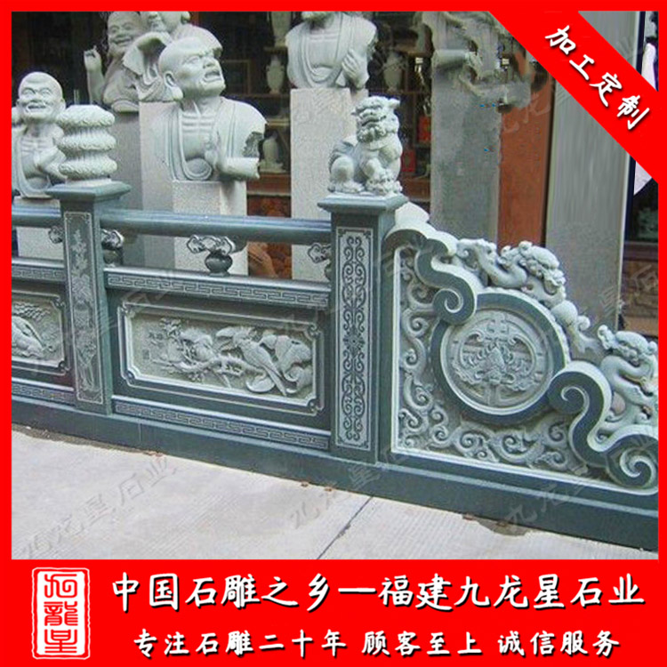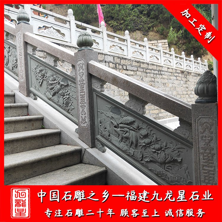 寺廟青石欄桿安裝效果圖片,我們也可以觀察到寺廟青石欄桿欄板上面雕刻著精美的圖案。寺廟青石欄桿欄板雕刻花鳥浮雕、浮雕龍鳳、麒麟、獅子等動物;浮雕佛像、浮雕荷花、蓮花、祥云等等。文中的寺廟青石欄桿安裝效果圖片供大家欣賞定做。