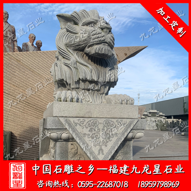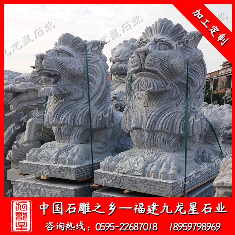 石雕獅子(花崗巖石雕石獅子 門口石獅子擺放)——九龍星石業(yè)