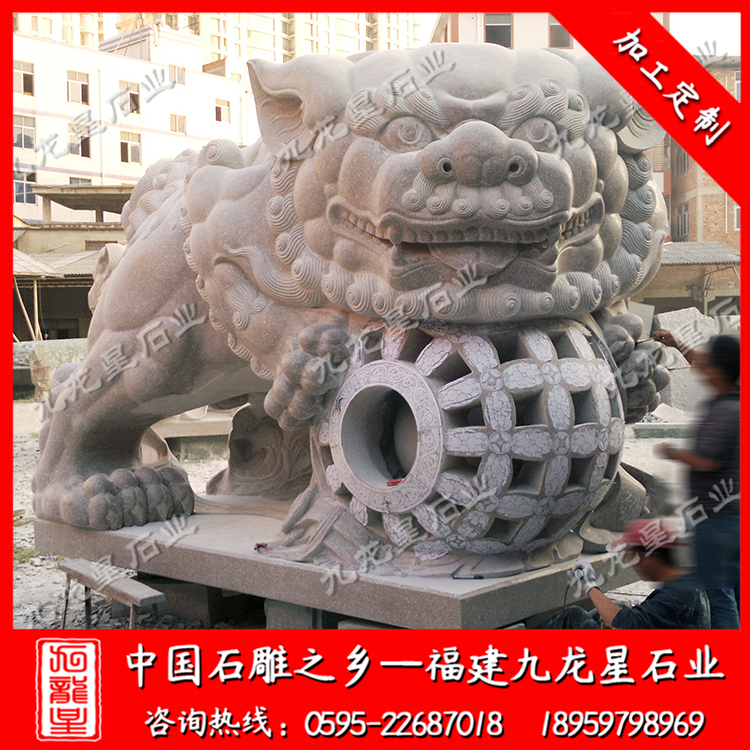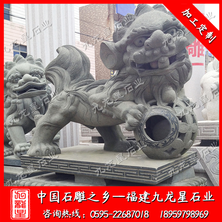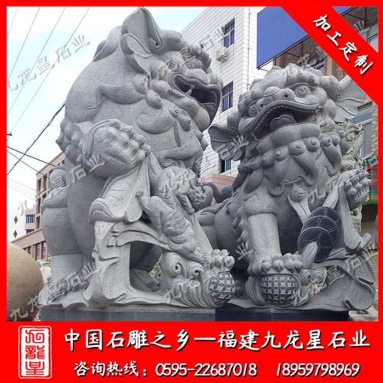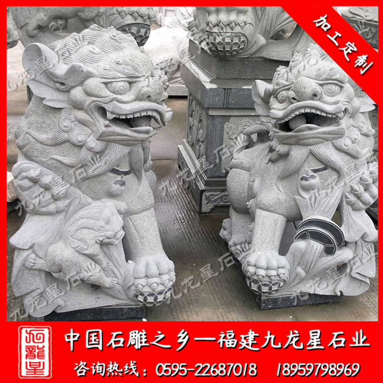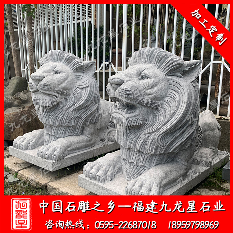 石雕獅子(石雕門獅子 花崗巖石獅子 擺放獅子塑像)——九龍星石業(yè)