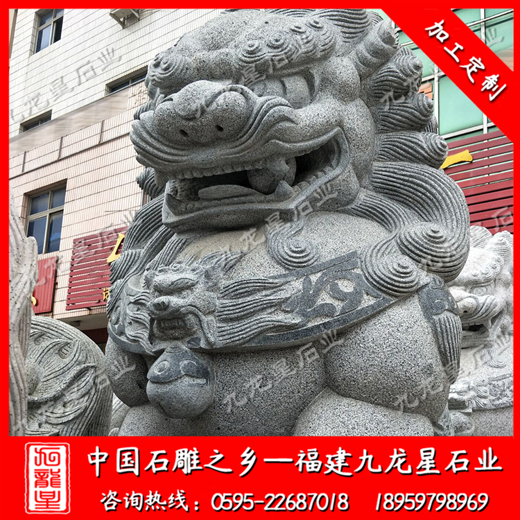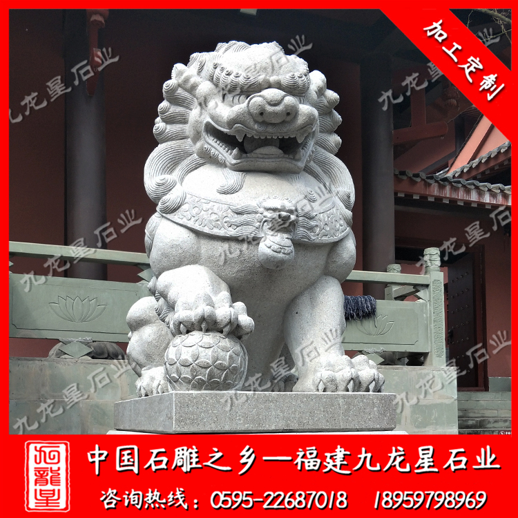 獅子--金璽王中王威武獅子--是大秦王朝的代表,有帝王的氣魄,也有民間的親和,雄獅它可以辟邪,為你的事業(yè)保駕護(hù)航;雌獅它可以招財(cái)納寶、招徠祥瑞,為你的事業(yè)加上吉祥的光環(huán)。這種石料有一種古代的味道,卻還包含著現(xiàn)代的氣息,特別耐看,值得尋味。它的造型傳承著 5000年的文化,又展現(xiàn)現(xiàn)代人的精神。這種石料不象漢白玉,不耐風(fēng)雨,它卻相反,越是風(fēng)雨越是滄桑和的精神。這就是威武獅子的魅力,這就是它的氣勢(shì)。