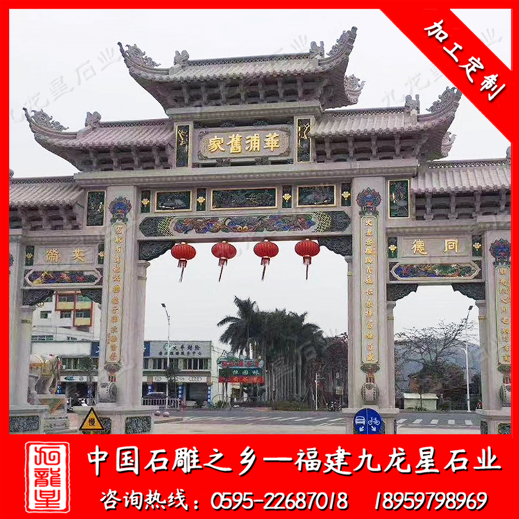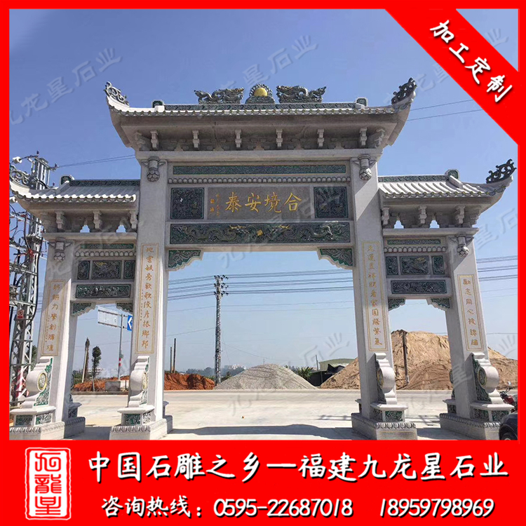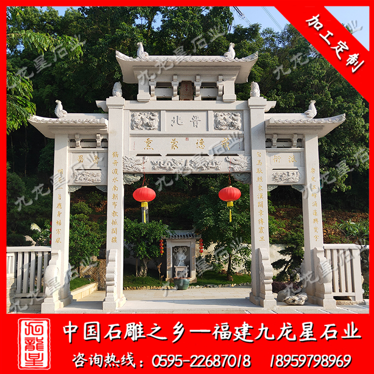 石雕牌坊(三門石雕牌坊廠家 農(nóng)村石牌樓加工制作)——九龍星石業(yè)