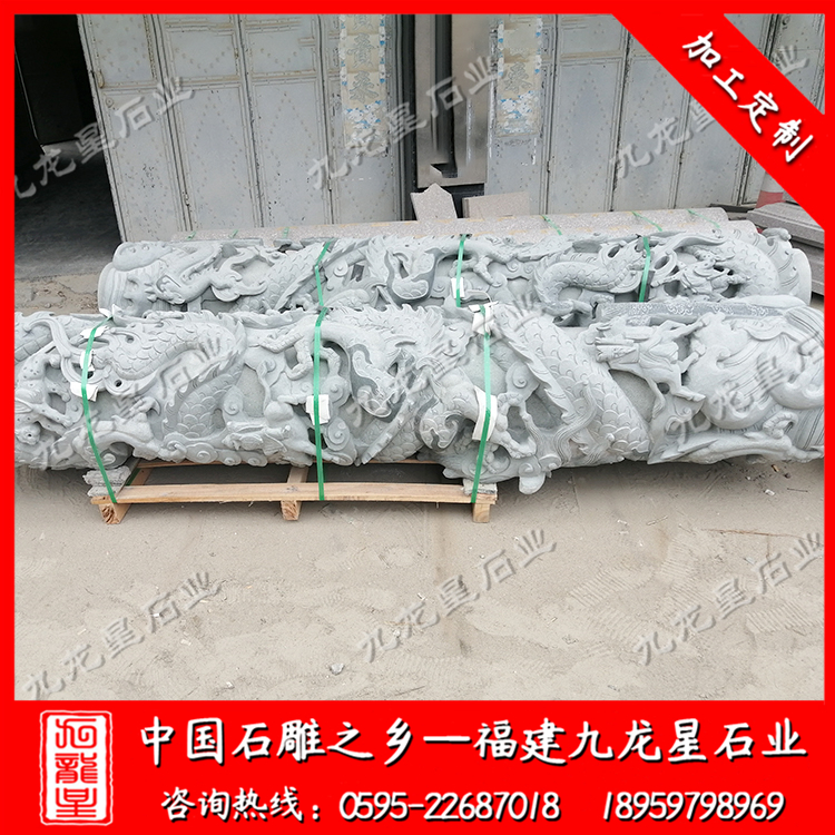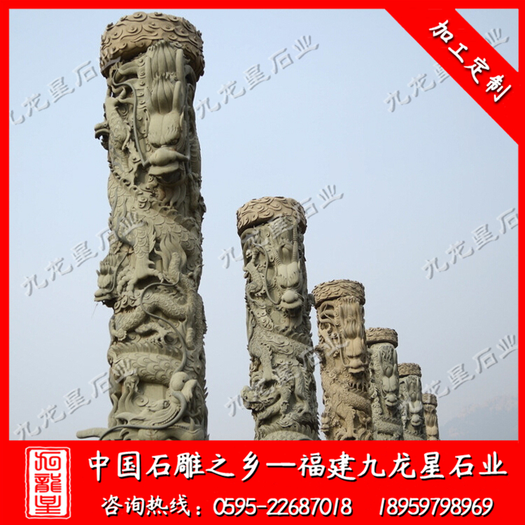 石雕龍柱(寺廟石雕龍柱 浮雕石龍柱 廣場石柱子)——九龍星石業(yè)
