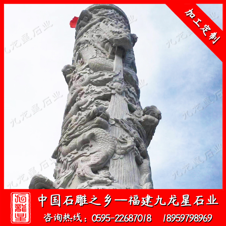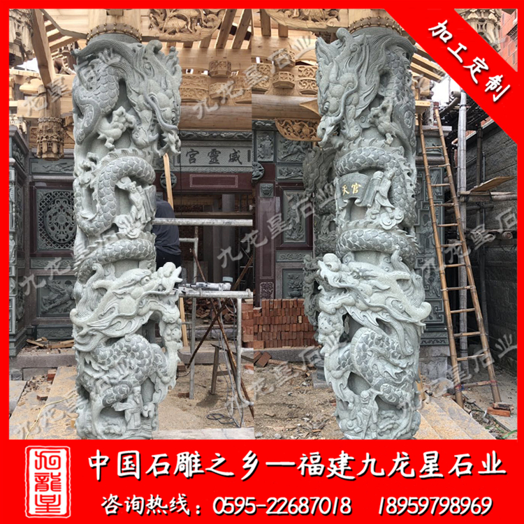 石雕龍柱(惠安石雕龍柱生產(chǎn)廠家 祠堂大型石龍柱)——九龍星石業(yè)