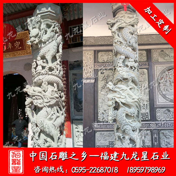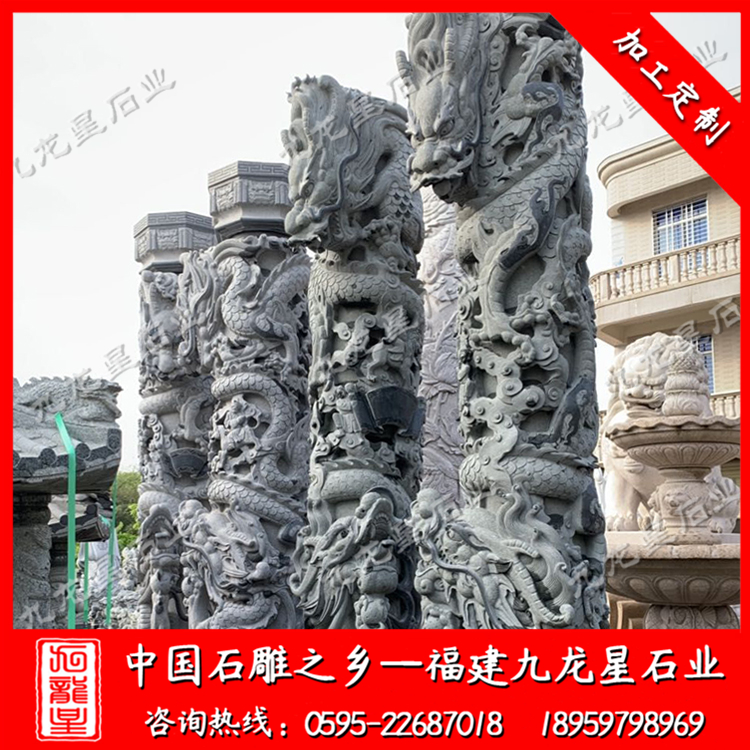石雕龍柱(石雕盤龍柱廠家 青石龍柱雕刻 石雕圖騰柱)——九龍星石業(yè)