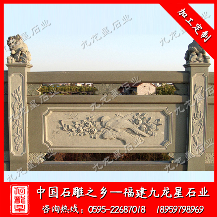 在我國現(xiàn)代建筑中,石雕欄桿是我們比較常見的一種石雕建筑,也是用于防護安全的主要石雕建筑。一般會用在橋面河道的兩邊,寺廟樓梯,景區(qū)高處,家庭陽臺,臺基的四周等等。石雕欄桿的用處既可以將整個特定區(qū)域進行合理的分割,使得在空間上有一定的格局,也在安全上起到很好的防護作用。石雕欄桿在雕刻上又可以根據(jù)我們所想要的款式圖案進行定做,整個石雕欄桿最為特色的就是在欄板上的圖案,精美好看的圖案,不僅視野上給人一種非常好的效果,而且也能提升整體環(huán)境的美感。