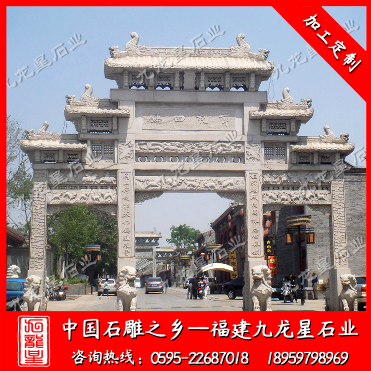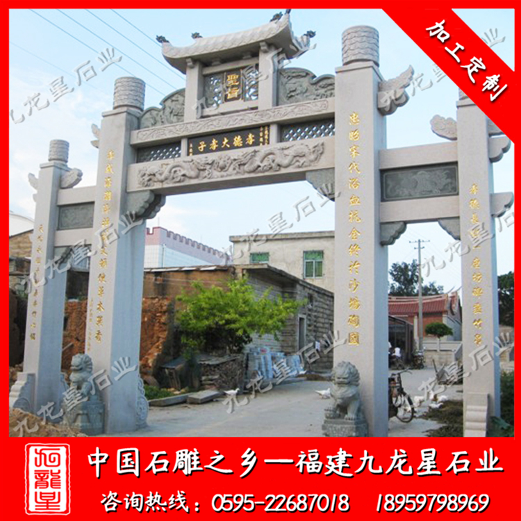 石雕牌坊(花崗石石雕牌坊廠家 村口石雕牌坊定制)——九龍星石業(yè)