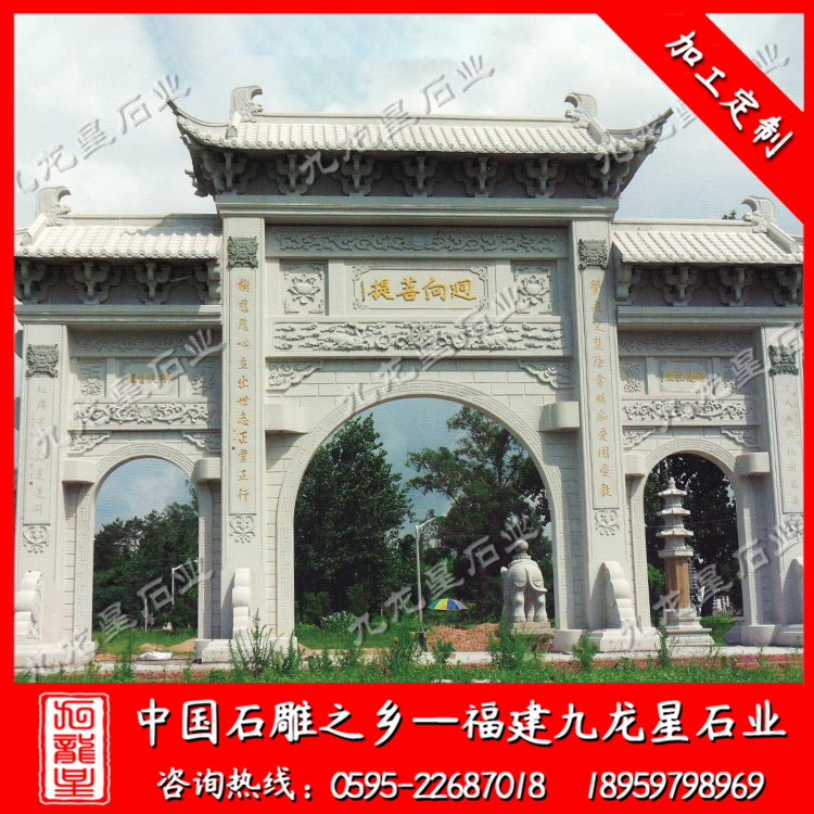 石雕牌坊 您現(xiàn)在的位置: 九龍星石業(yè) > 石雕牌坊 > 寺廟石雕山門牌坊 福建石雕牌樓定制