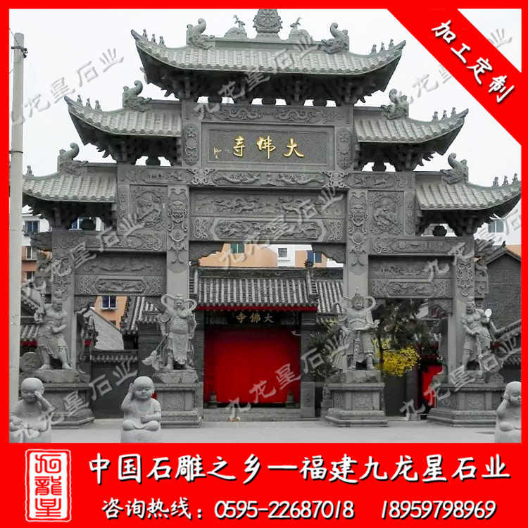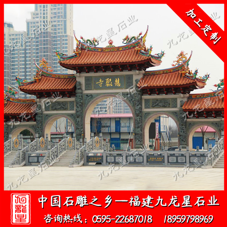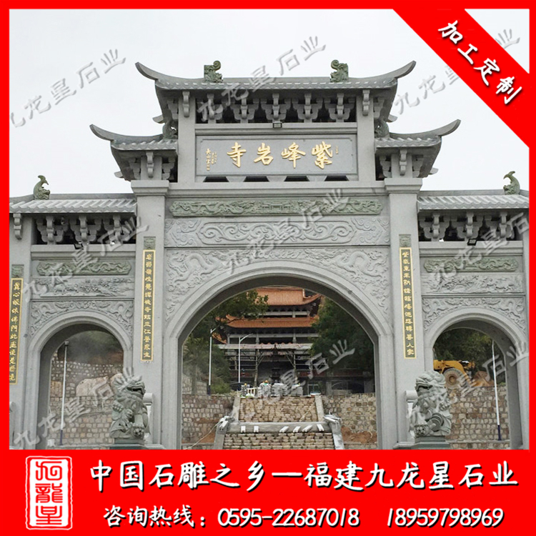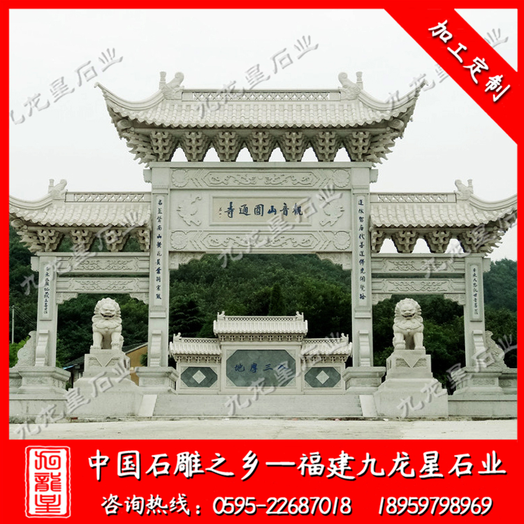 石雕牌坊(寺廟石雕山門牌坊 福建石雕牌樓定制)——九龍星石業(yè)