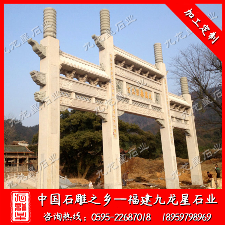 石雕牌坊 您現(xiàn)在的位置: 九龍星石業(yè) > 石雕牌坊 > 供應寺院大型石牌坊 山門牌坊生產廠家