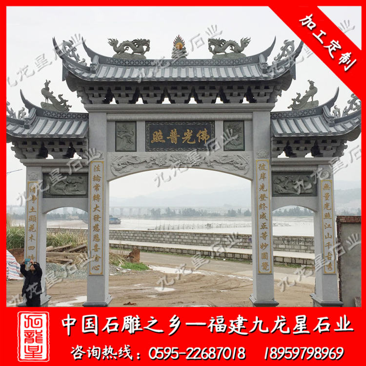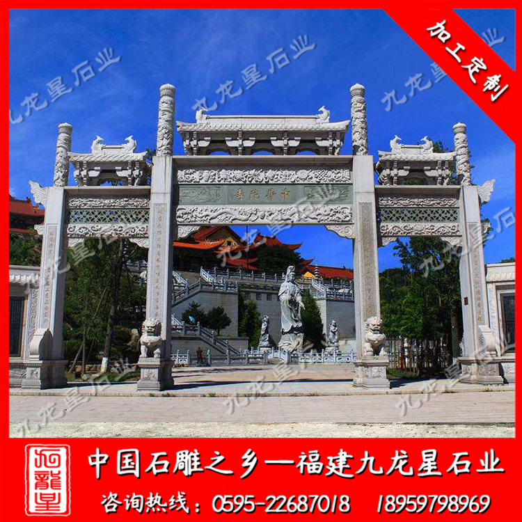 石雕牌坊(供應寺院大型石牌坊 山門牌坊生產廠家)——九龍星石業(yè)