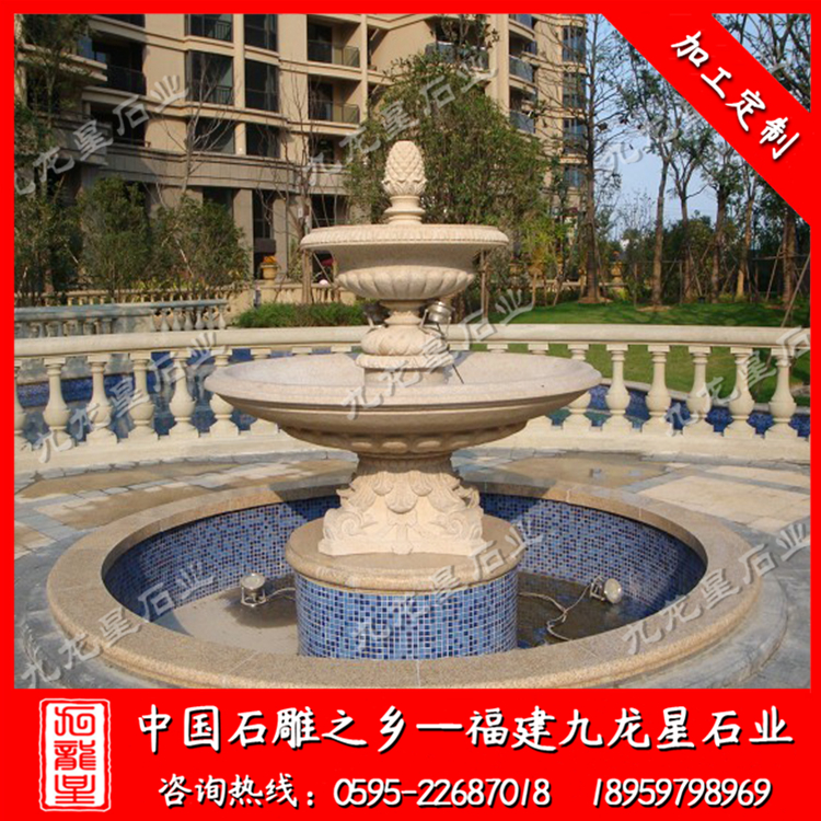 石雕水缽呈弧形,是由許多個大小噴水孔,各種雕塑組成的。石雕水缽不但具有天然石材質(zhì)地堅硬、耐磨、重量感的特征,更為難得的是它表面的質(zhì)感以及強烈的可塑性和表現(xiàn)力??墒蛊浔M顯各種不同的藝術(shù)風(fēng)格。其在建筑和裝飾空間中,表現(xiàn)出的自然裝飾性效果及藝術(shù)內(nèi)涵,是其它裝飾材料所無法比擬的。藝術(shù)質(zhì)感更加自然古樸,真正達(dá)到健康環(huán)保,為您豪華的家居別墅、園林庭院、賓館酒店及環(huán)境藝術(shù)增添畫龍點睛之筆。