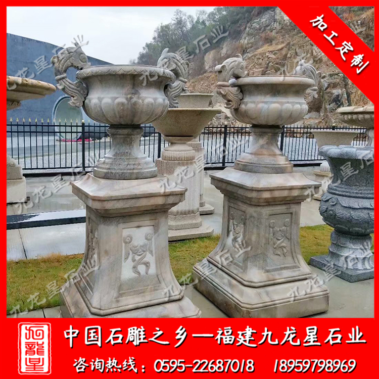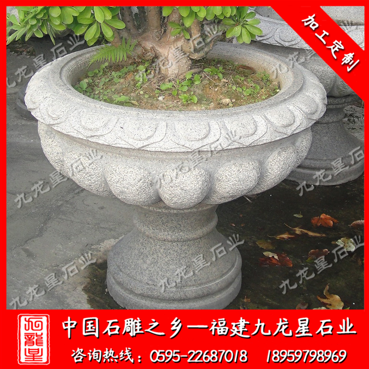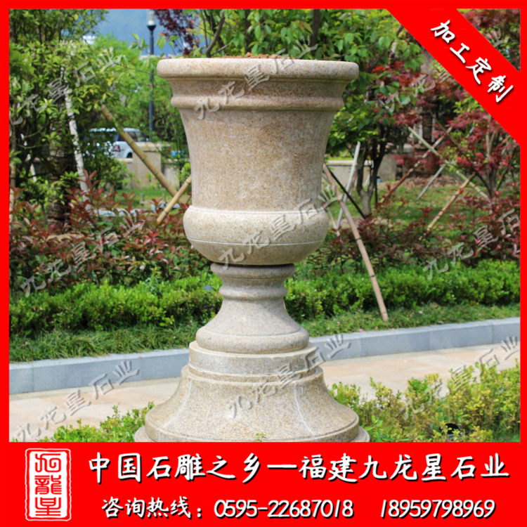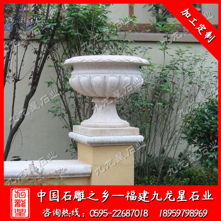 石雕花缽(加工石材花盆 歐式花缽 小區(qū)別墅花缽)——九龍星石業(yè)