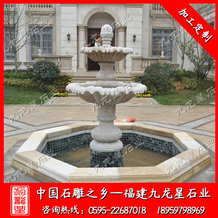 在現(xiàn)代建筑工程項目中,經(jīng)常會設計出一塊場地用于擺放石雕水缽,而選取的位置通常是整個位置的中央,必須很顯眼,所以一般會設計在大門口。這其中還有另外一個理由,涉及到風水學理論,在風水學中,水為財,門口有水,則意味著財源廣進,財運當頭。水缽噴泉就像一個城市的某一個地方的載體,不可缺失,它能帶給人們很好的環(huán)境體驗。水缽可做為藝術加濕器,流水和濺起的水珠能產(chǎn)生大量的負氧離子,可以消除空氣中的異味,令空氣更清新。小小的水景與植物、花卉、燈具結合可以使流水,花草,燈光相互交匯,帶你進入仙境之中,人的精神狀態(tài)好,思想更敏捷。所以,不論在小區(qū),酒店,廣場,在顯眼的正中央你總能看到水缽噴泉的身影,當然有的地方大,像小區(qū)就不一定只安放一個水缽,有可能會在不同位置安放一些小型水缽。