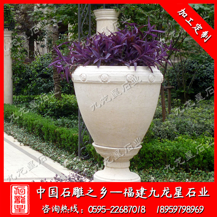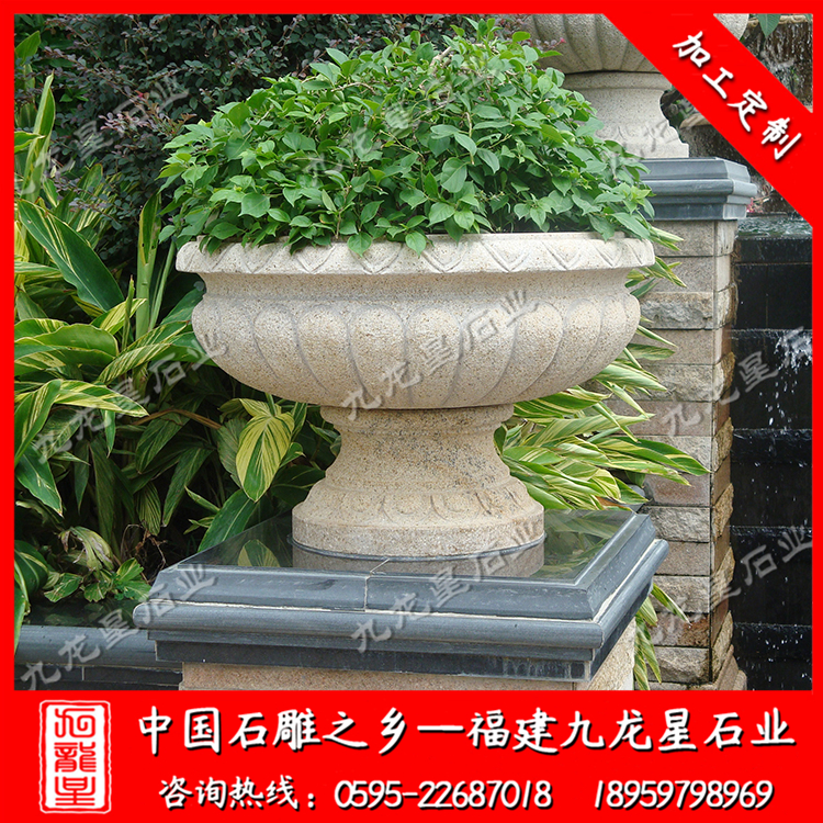 小區(qū)石雕花盆是采用天然石頭精雕細琢而成的石雕花盆,形態(tài)逼真,栩栩如生。石雕花盆質(zhì)地堅硬致密、強度高、抗風化、耐腐蝕、耐磨損、吸水性低,鮮艷的色澤還能保存百年以上,顏色美觀。 適用于小區(qū),廣場,園林,酒店,學(xué)校,戶外園林景觀工程等場所 。作為新型的花卉應(yīng)用形式,石雕花盆具有花壇和其他花盆無法達到的優(yōu)勢,與花壇相比,石雕花盆靈活,大多能夠移動,外形美觀,造型新穎多樣,還可以進行組合和裝飾。 使用石雕花盆美化環(huán)境時,可根據(jù)石雕花盆樣式、大小的不同,進行各式各樣的藝術(shù)組合。