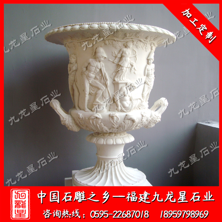 石雕花缽(小區(qū)石雕花盆 大理石花缽 石頭花盆雕刻)——九龍星石業(yè)