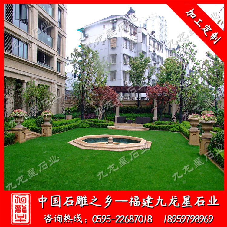 石雕花缽生產(chǎn)廠家在制作過程中常用到的素材都是天然石材,一般為花崗巖和少數(shù)大理石、砂巖,其中以花崗巖為常見。常用的花崗巖石材種有黃銹石、黃金麻,這兩種石材的顏色與黃金的顏色接近,有財(cái)寶的象征寓意,對(duì)于偏愛象形諧音、講究風(fēng)水的中國人來說,對(duì)之非常喜歡。而這種顏色又與土地泥巴的顏色相接近,很好打理,因此在建筑景觀中使用頻率非常高。常見到的大理石一般為米黃系列大理石,這類大理石由于石材價(jià)格昂貴,通常會(huì)在一些相對(duì)髙檔的小區(qū)中使用,以埃及米黃、西班牙米黃大理石花缽常見。當(dāng)然了,有時(shí)候?yàn)榱耸沟没ɡ徟c整體環(huán)境能夠搭配得更美觀,有時(shí)也會(huì)用一些其他石材的花缽,比如漢白玉花缽、芝麻白花缽、楓葉紅花缽等等。