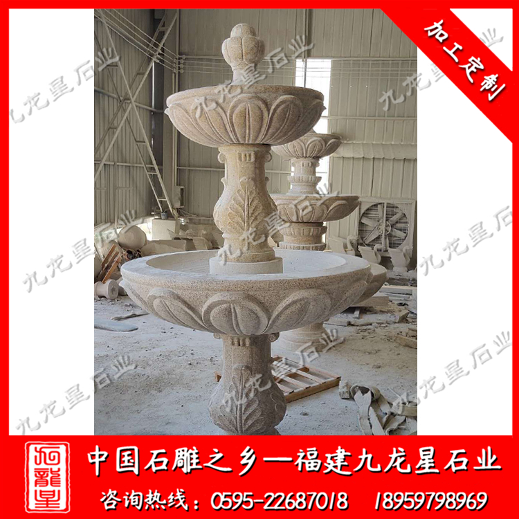 石雕噴泉的浮雕花紋一般都是噴泉為經(jīng)典的地方,也是吸引人的地方,石雕大師們一直在琢磨更為經(jīng)典的圖案,如何加工出更適合噴泉外表花紋的樣式成為人們對石雕噴泉的一個非常期待的東西。目前噴泉的花紋大部分采用的是歐式花紋樣式,但隨著我國石雕行業(yè)的發(fā)展,噴泉上多了許多精美的中式元素。底座上,歐式的建筑大多都是波浪形的花紋和螺紋狀的漩渦形態(tài),類似羅馬柱的裝飾花紋,向日葵等。中式噴泉底座大多采用祥云立體圖案,我國鼎器的支腳圖案,梅蘭竹菊等花朵,蟾蜍、貔貅等都是底座雕刻的花紋類型。