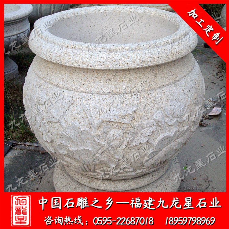 石雕花盆花缽既石材花缽具有其獨(dú)特的性質(zhì)。其質(zhì)地相對(duì)于其他石材相對(duì)較軟,易于雕刻。且不易磨損、坑風(fēng)化能力強(qiáng)。吸水性低、保留時(shí)間長(zhǎng)久。是較好的花缽雕刻材料。