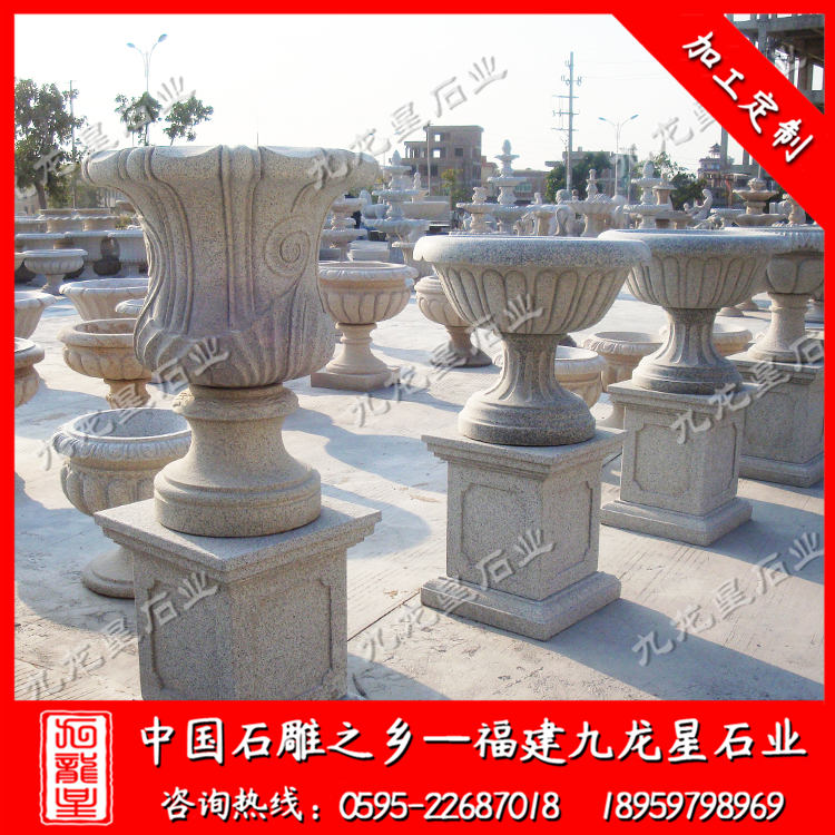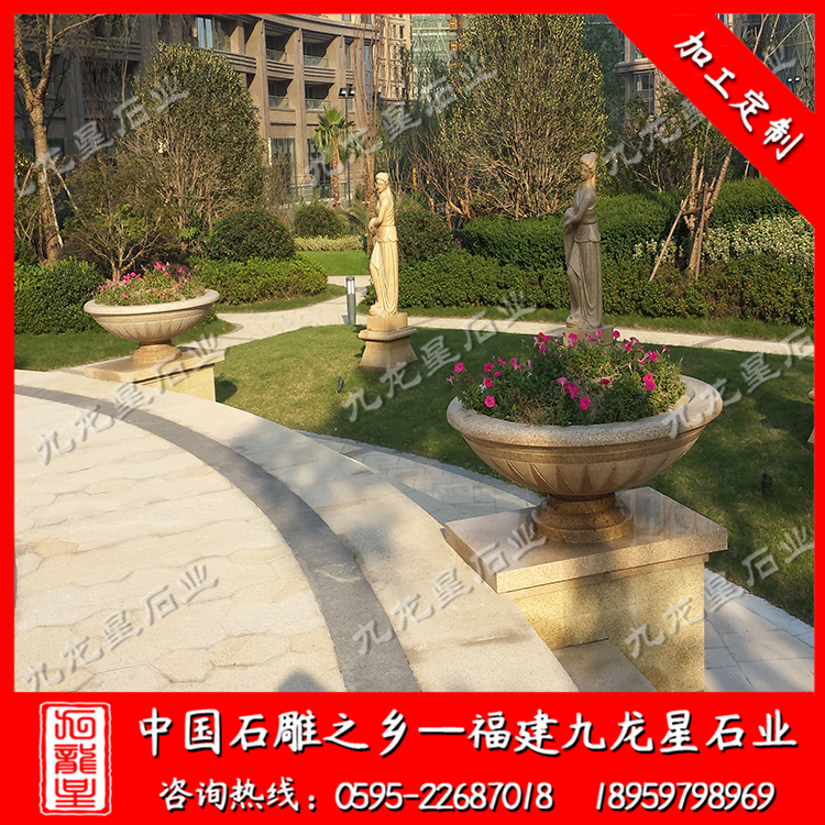 石雕花缽(景觀石雕花缽 歐式花缽 房地產(chǎn)花缽擺放)——九龍星石業(yè)