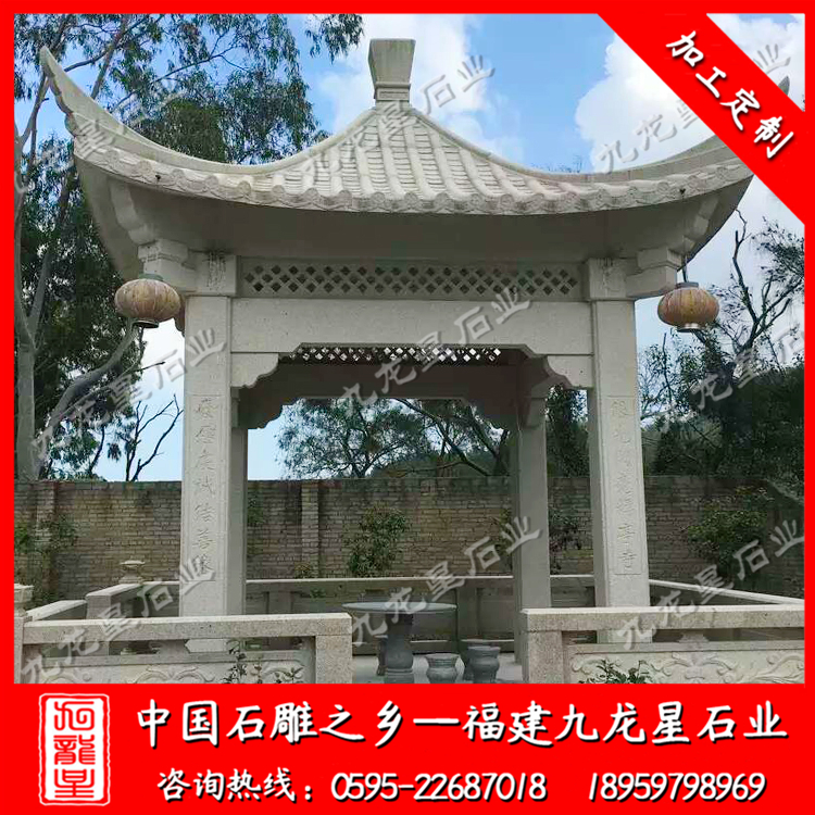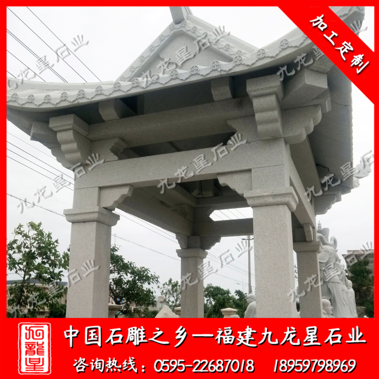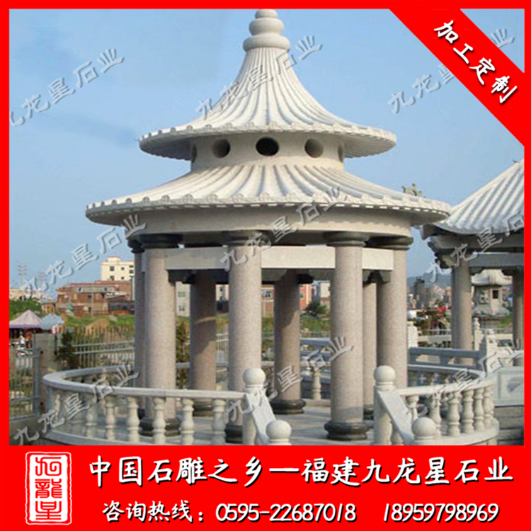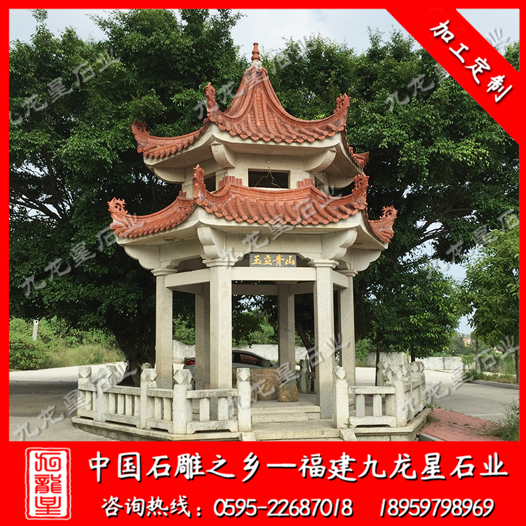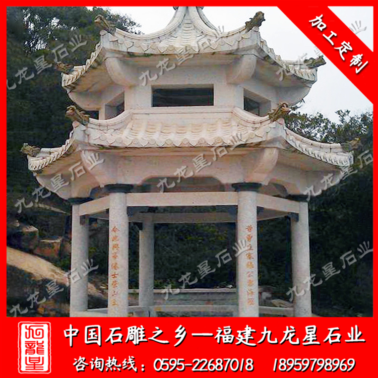石雕涼亭(六角石雕涼亭 單層石亭子 花崗巖涼亭廠家)——九龍星石業(yè)