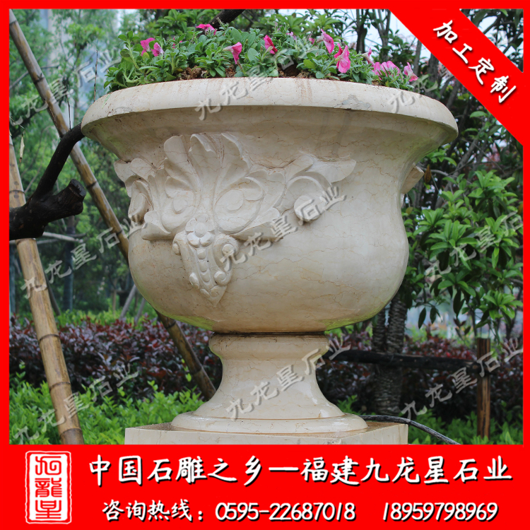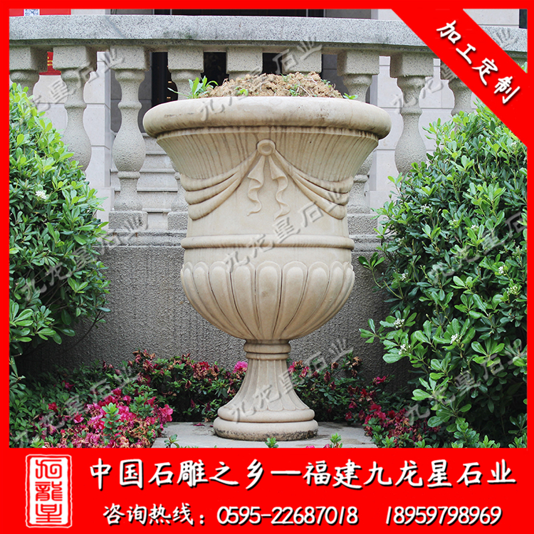 石雕花缽(石雕歐式花缽批發(fā) 埃及米黃花缽雕刻)——九龍星石業(yè)