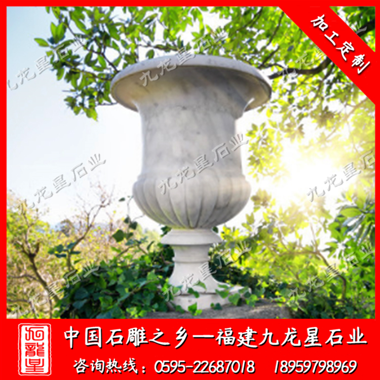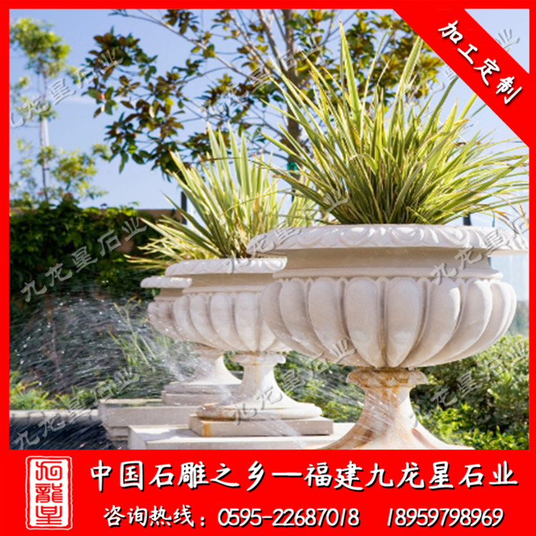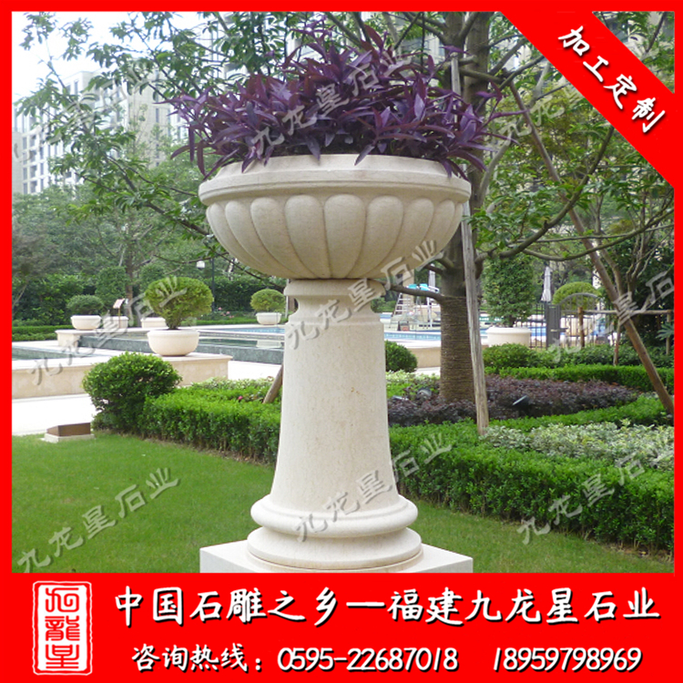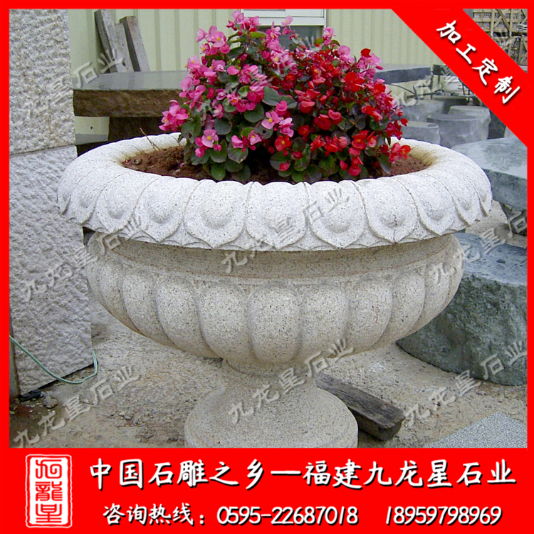 近年來,一些大型廣場、繁華鬧市等特殊地段,由于實(shí)施黃土不露天工程,因此這類地段的綠化美化大多通過使用各類花盆來實(shí)現(xiàn)。在街頭,三三兩兩的花盆,一字排開,花盆內(nèi),各色的時(shí)令花卉栽種其間,通過定期地澆水、施肥、養(yǎng)護(hù)后,便收到了不錯(cuò)的景觀效果。街頭擺花的流行,讓生產(chǎn)花盆的廠家有了用武之地。與以往陶盆、瓷盆、漢白玉花槽不同的是,如今用各種石材制作而成的花盆在市場上占據(jù)上風(fēng)。