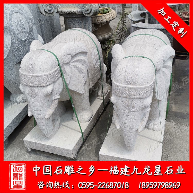 石雕大象(石雕大象的擺放 花崗巖吉象 動(dòng)物石大象雕塑)——九龍星石業(yè)
