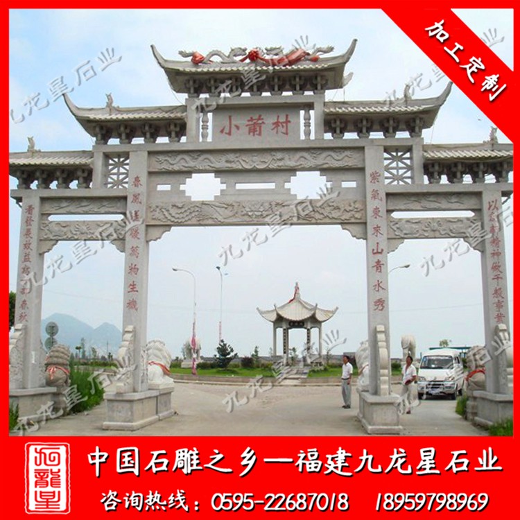 對于風(fēng)景區(qū)建立的石雕牌樓,造型樸實(shí)大方,樓頂層層疊疊,簡潔醒目,很有氣勢,它無聲的述說著人們對于雕刻之美的追求,發(fā)揮著社會教化的作用,可以這么說,牌坊石雕圖片的牌坊文化跟中華文化之間有著緊密的聯(lián)系。現(xiàn)在各種各樣的新建石雕牌坊姿態(tài)萬千,形象不一,無不體現(xiàn)了石雕設(shè)計(jì)師的別具匠心,通過不同的石雕牌坊來表現(xiàn)不同的文化特色。