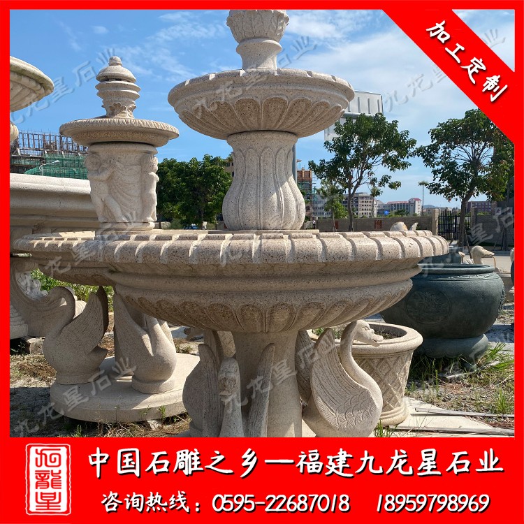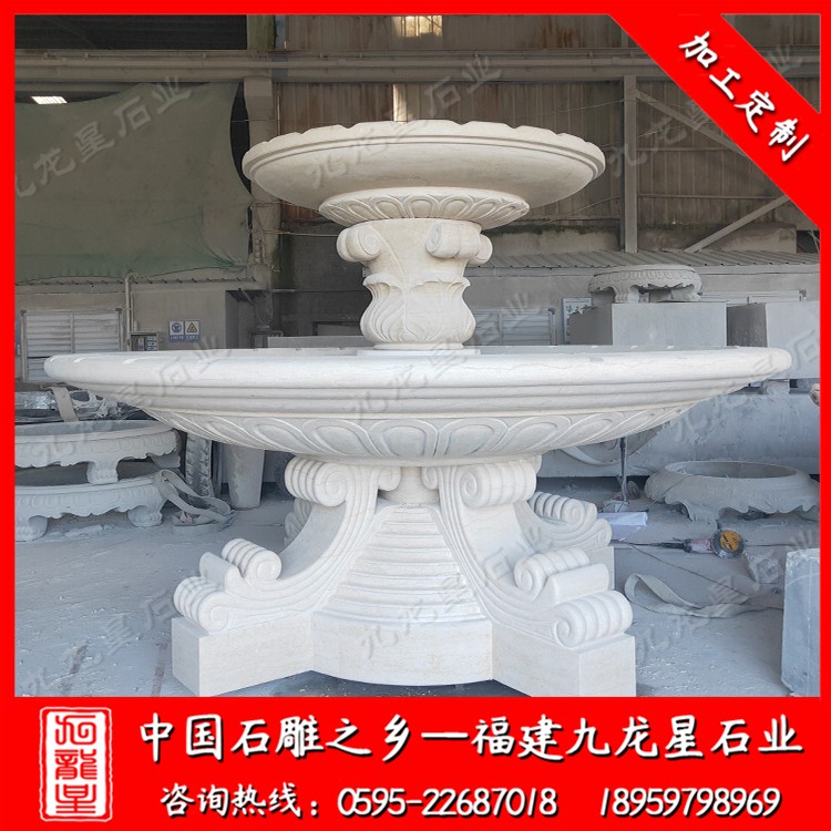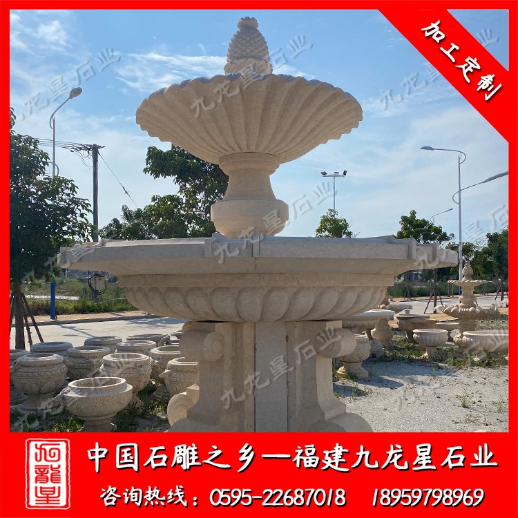 石雕水缽(雙層石雕水缽廠家 黃銹石水缽 噴泉水景制作)——九龍星石業(yè)