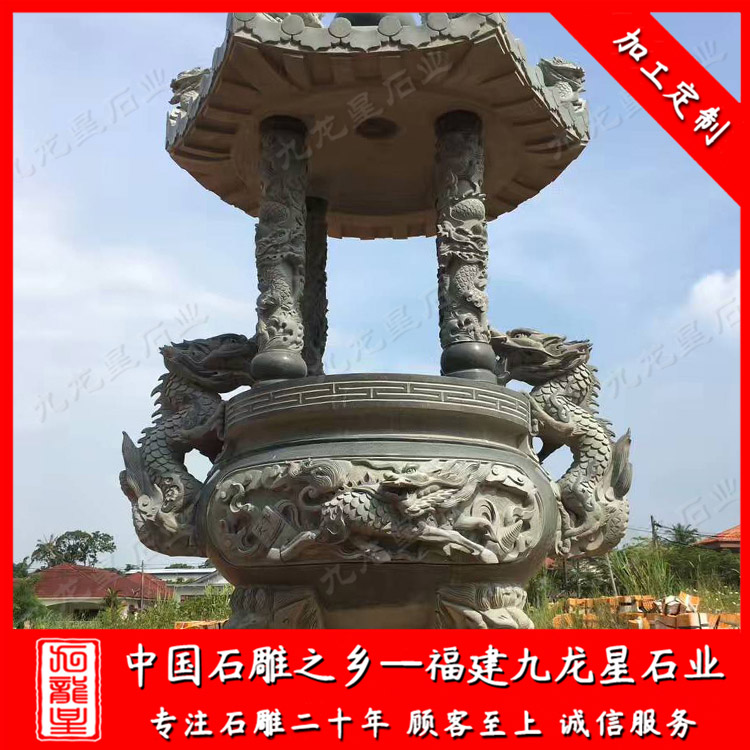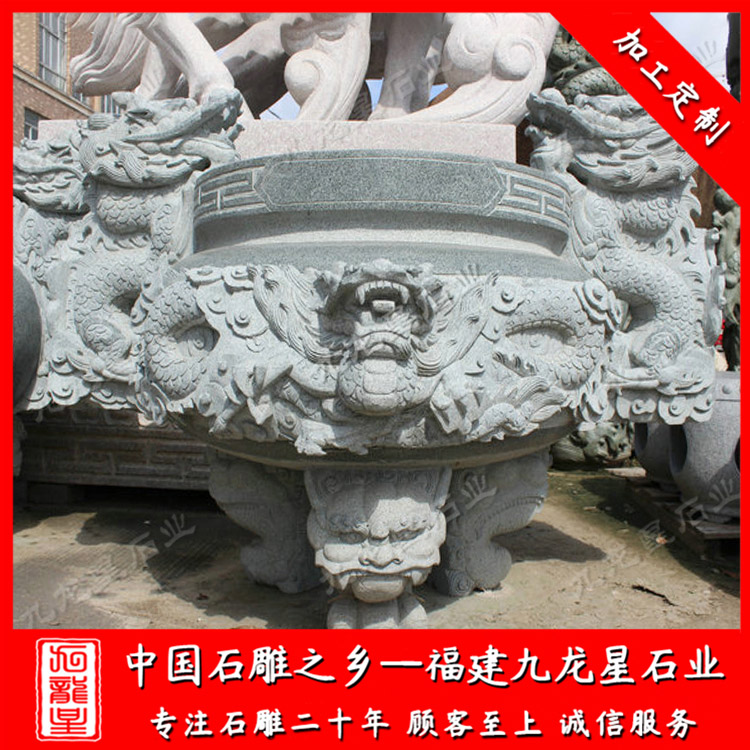 石雕香爐(惠安石雕香爐 寺廟香爐圖片 圓形石雕香爐 )——九龍星