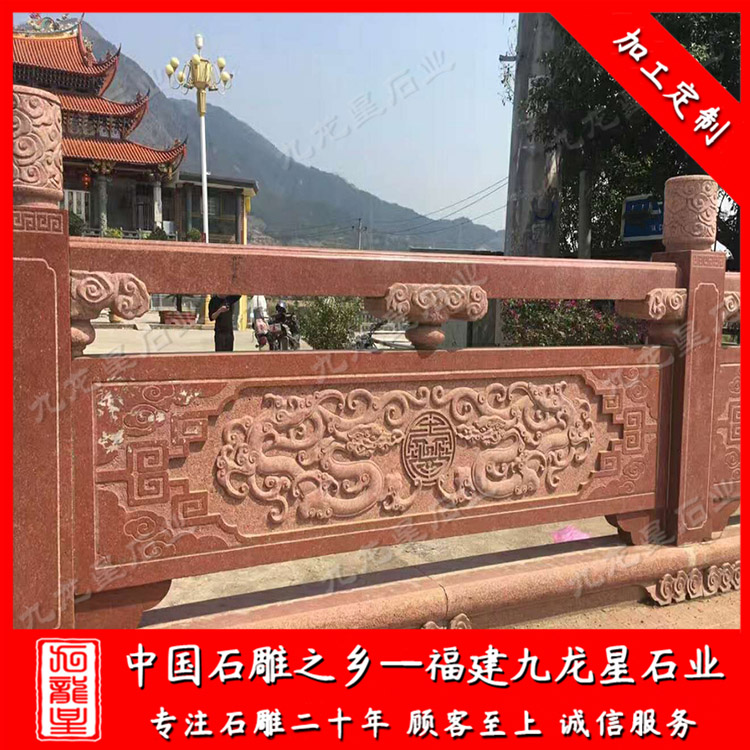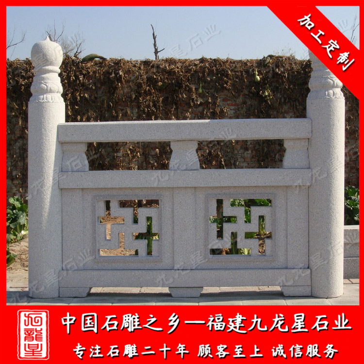 在當今社會,石雕欄桿的運用也是十分廣泛,我們隨處可見石雕欄桿的身影。福建九龍星石業(yè)發(fā)展有限公司位于石雕之鄉(xiāng)--福建惠安,是欄桿石雕廠家,從事石欄桿雕刻制作20多年,制作經(jīng)驗豐富。石欄桿材質(zhì)可以為花崗巖、青石、漢白玉等等,望廣大新老客戶前來參觀考察和選購。