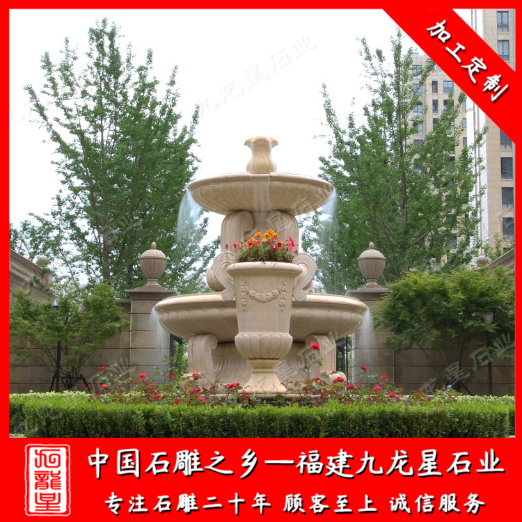 廣場歐式石雕噴泉是一種自然景觀,是承壓水的地面露頭。園林中的歐式石雕噴泉,一般是為了造景的需要,人工建造的具有裝飾性的噴水裝置。