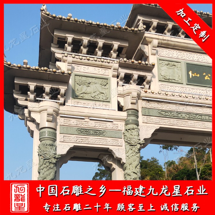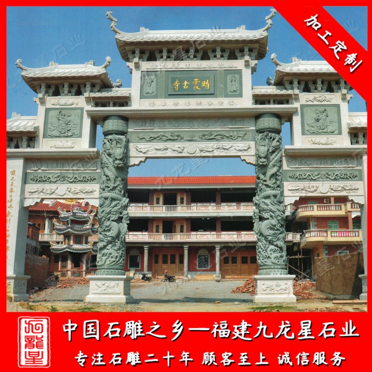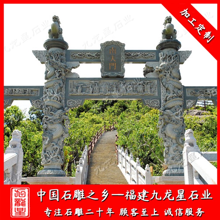福建九龍星石業(yè)發(fā)展有限公司位于石雕之鄉(xiāng)--福建惠安,是青石牌坊廠家,從事青石牌坊加工雕刻制作20多年,青石牌坊圖片款式多樣,制作經(jīng)驗(yàn)豐富,雕刻工藝jing湛,青石牌坊材質(zhì)可以為花崗巖、青石、漢白玉等等,望廣大新老客戶前來參觀考察和選購。