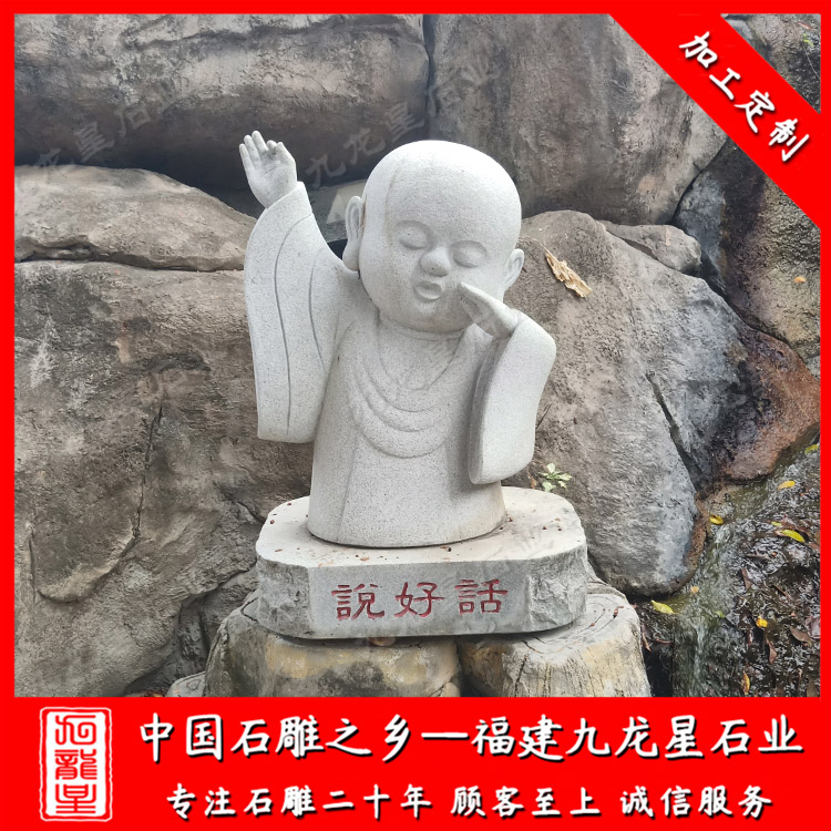 寺廟小和尚石雕廠家、石雕小沙彌廠家很多集中在福建惠安,福建九龍星石業(yè)發(fā)展有限公司位于--福建惠安,是寺廟小和尚石雕廠家,九龍星人相信每塊石頭都獨(dú)馥藝術(shù)氣息,所以善用千年文化雕鑿工藝的研究、傳承、融合和發(fā)揚(yáng),使石雕作品承載藝術(shù)文化、體現(xiàn)更多社會(huì)價(jià)值。九龍星從事小和尚石雕、石雕小沙彌加工制作20多年,小和尚石雕、石雕小沙彌圖片全、小和尚石雕、石雕小沙彌款式多樣,小和尚石雕、石雕小沙彌材質(zhì)可以為花崗巖、青石、漢白玉等等,望廣大新老客戶前來參觀考察和選購(gòu)。