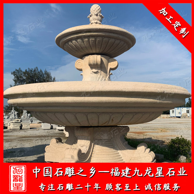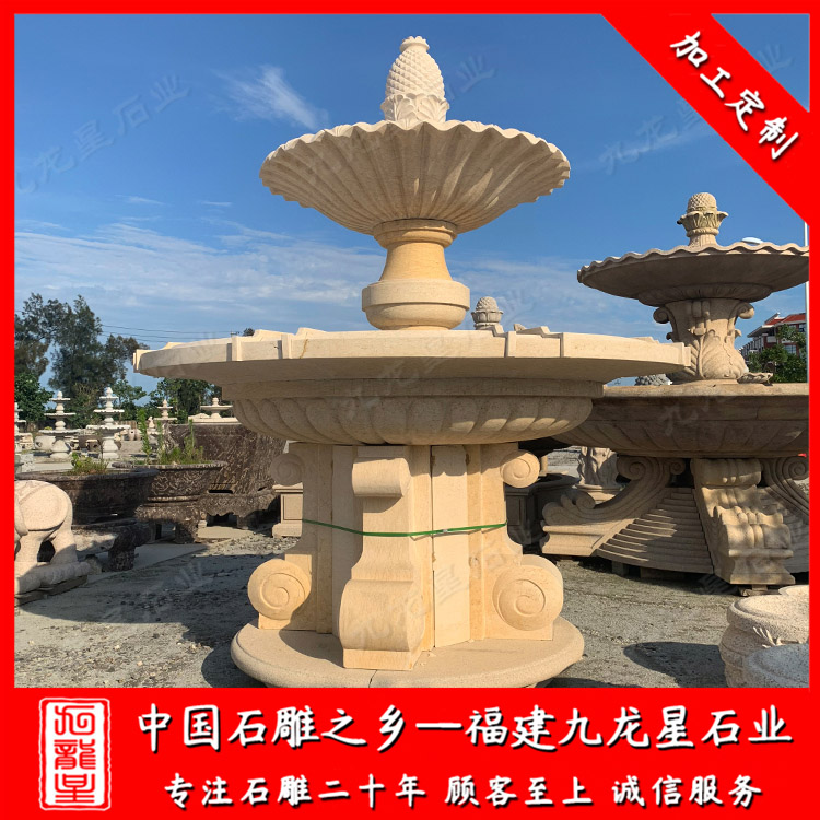 大號(hào)型石雕噴泉設(shè)計(jì)上還可以分為單層石雕噴泉、兩成石雕噴泉、三層石雕噴泉等等。石材的選料可以為黃銹石噴泉石雕、大理石石雕噴泉、花崗巖石雕噴泉、其中埃及米黃石雕噴泉被很多人用于小區(qū)和廣場(chǎng)。