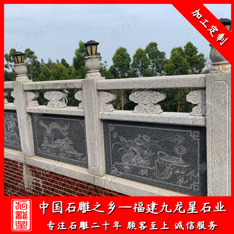 福建九龍星石業(yè)發(fā)展有限公司位于石雕之鄉(xiāng)--福建惠安,是園林石欄桿批發(fā)廠家,從事園林石欄桿雕刻制作20多年,園林石欄桿圖片全,款式多樣,石雕欄桿護(hù)欄制作經(jīng)驗(yàn)豐富,望廣大新老客戶前來(lái)參觀考察和選購(gòu)。