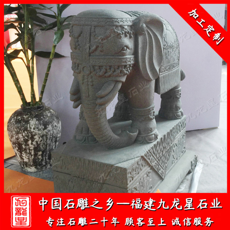 石雕大象(門口石材大象廠家報價 青石大象擺放門口)——九龍星石業(yè)