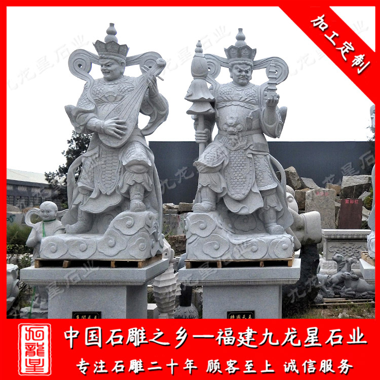 四大天王石雕廠家很多集中在福建惠安,福建九龍星石業(yè)發(fā)展有限公司位于--福建惠安,是四大天王石雕廠家,九龍星人相信每塊石頭都獨(dú)馥藝術(shù)氣息,所以善用千年文化雕鑿工藝的研究、傳承、融合和發(fā)揚(yáng),使石雕作品承載藝術(shù)文化、體現(xiàn)更多社會價(jià)值。九龍星從事佛教四大天王石雕像加工制作20多年,石雕四大天王圖片全,款式多樣,有坐像四大天王、站像四大天王。石雕四大天王可以為花崗巖、青石、漢白玉等等,望廣大新老客戶前來參觀考察和選購。