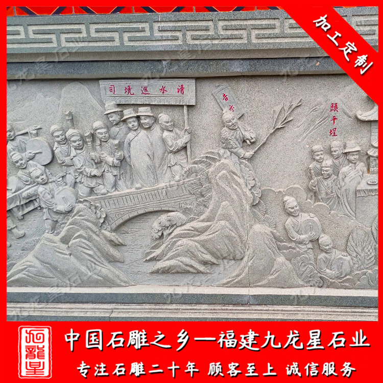 石材(青石)浮雕是將精美的圖象雕琢在青石石材表面,美觀大方,且極富立體感。石材(青石)浮雕作為一種人們自己創(chuàng)作設(shè)計并雕刻的手工工藝品它是最古老的文明,并留給我們現(xiàn)代人豐富的歷史文化藝術(shù)遺產(chǎn)。在石材浮雕的創(chuàng)造中它始終用獨特的手法和行為藝術(shù)形式來豐富著人們的文明歷史。