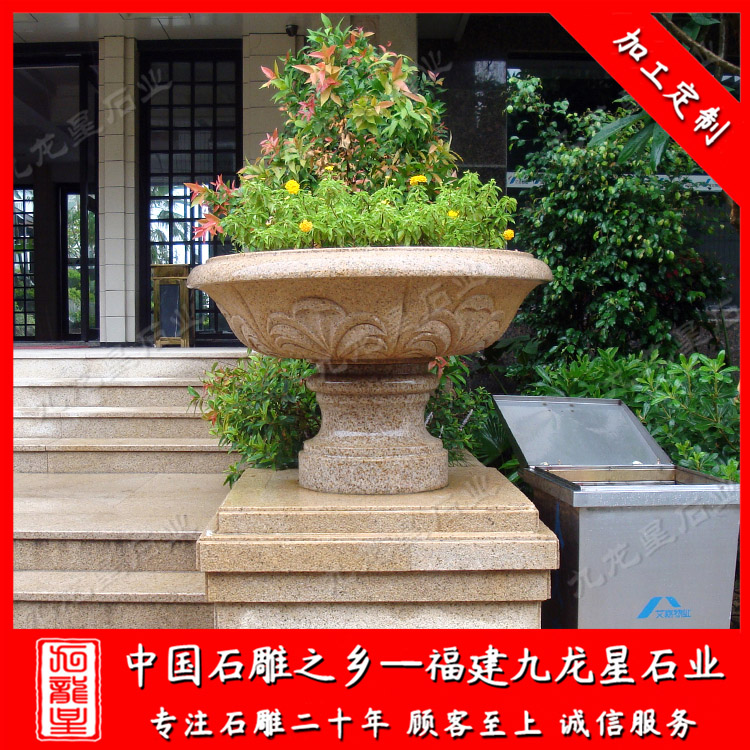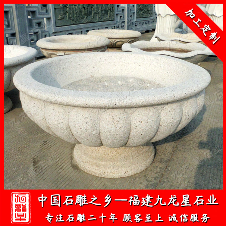 2、花崗巖花缽:花崗巖花盆質(zhì)地堅(jiān)硬致密、強(qiáng)度高、抗風(fēng)化、耐腐蝕、耐磨損、吸水性低,美麗的色澤還能保存百年以上,顏色美觀。