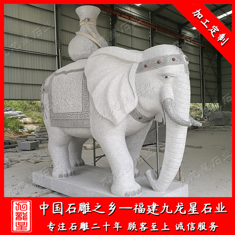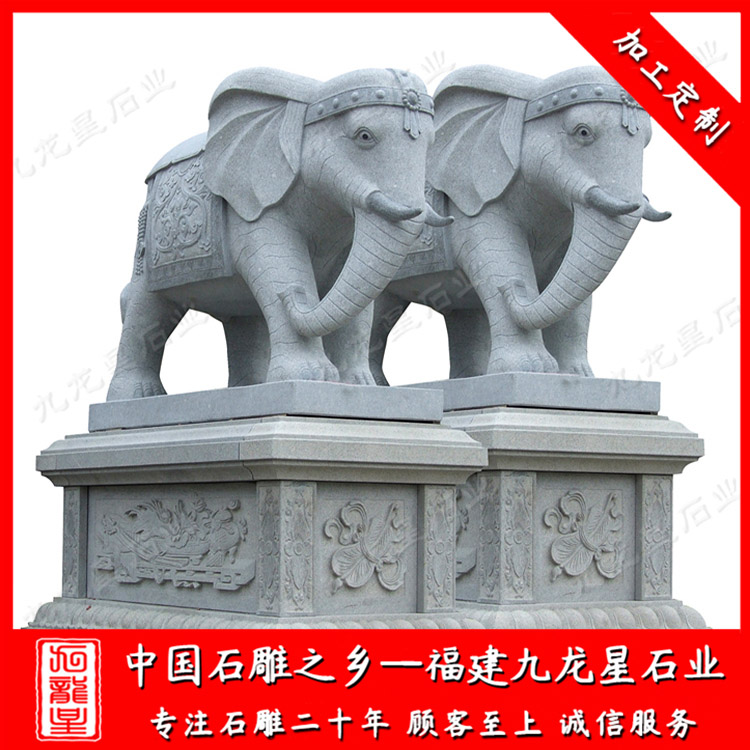 石雕大象(寺院門口石材大象廠家 大象造型的寓意 大象石雕報價)——九龍星石業(yè)