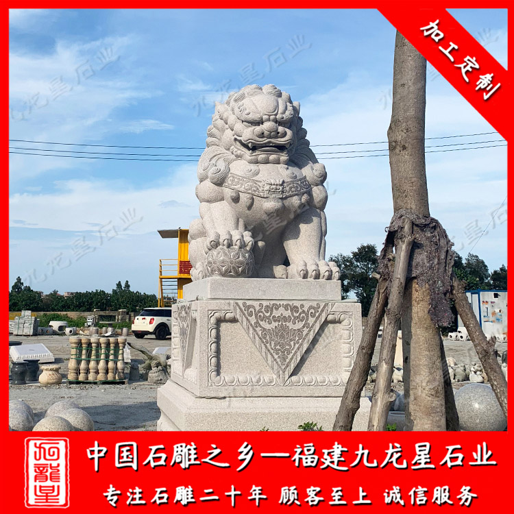 石雕獅子(銀行門口石獅子 一對(duì)石獅子雕塑 石獅子擺放講究)——九龍星石業(yè)