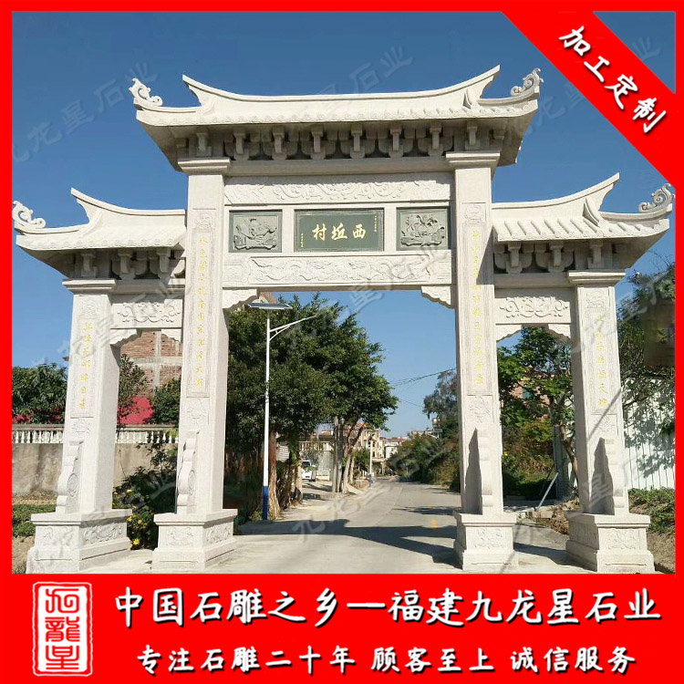 石雕牌坊(新農(nóng)村石雕牌坊樣式 三門三樓石牌坊圖片)——九龍星石業(yè)